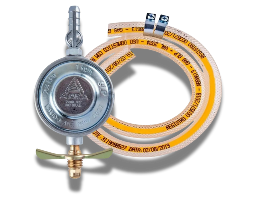 Ideal para uso doméstico, o kit acompanha registro e mangueira para ligação segura do botijão ao fogão. Compatível com o P13, garante o controle da pressão do gás com segurança e eficiência.